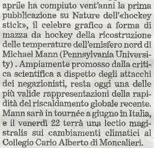 20 anni fa uscì il famoso paper originale di Mann et al. che diede origine ad una delle icone più famose delle scienze climatiche: quella, per l'appunto, della mazza da hockey.